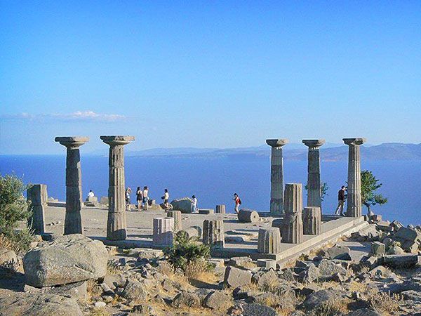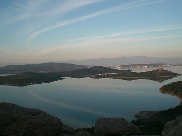Ayvalik is 2 km west of the main coast road, a small fishing port that also makes a living from olive-oil production and low-key tourism; it makes a good base for beach-lounging, and for visiting the ruins at Bergama, 70km southeast. The town lost its mainly Greek inhabitants during the exchange of populations that followed the Greek-Turkish war of 1920-1922. Ayvalik is a picturesque fishing harbor, facing the sparkling sea. Just behind the town, there are twenty deep green islands spread like thrown dice. A web of pedestrian ways gives unique shopping opportunities at prices that make the cheapest malls in Europe seem as most expensive. This is the place for "conspicuous consumption". The Danish "Politiken" guidebook writes: "By unexplainable reasons Ayvalik is only very rarely mentioned in guidebooks. The town is unique: Not only does it have some of the best beaches in Turkey, but also some of the best fish restaurants. One will long remember the time at the pier watching the lavender sunset slowly engulfing and transforming the faraway Lesbos into something enigmatic."